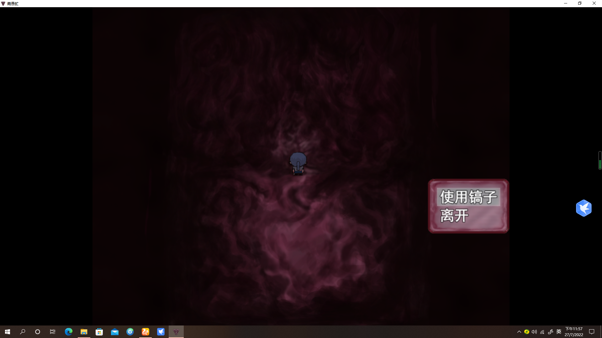 开局主角在一片看起来到处都是肉的地方苏醒,首先你需要拿起旁边闪着光亮的镐子,然后调查这张图上方中间,就会提示你破墙,凿开出口后,游戏开始。