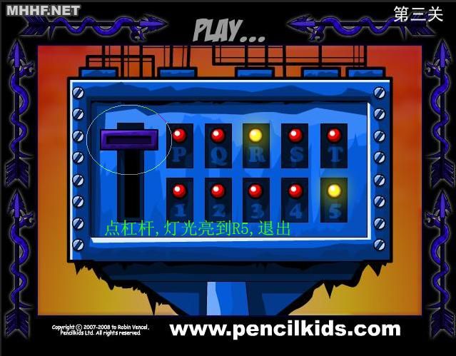 3.三个箱子右边的密码机,,点一下...按杠杆点到R5,,,调完数字点三角红色退出,,鼠标一晃就有个红箭头,,,一点就出去界面了,,,