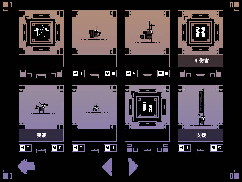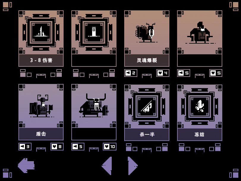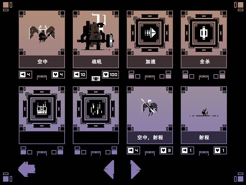 中间这个法术没见过效果,应该是BUG;“寒冰触摸”中间的标志应该是“头顶的犄角有伤害”的意思;“支援”应该是加攻不加血。