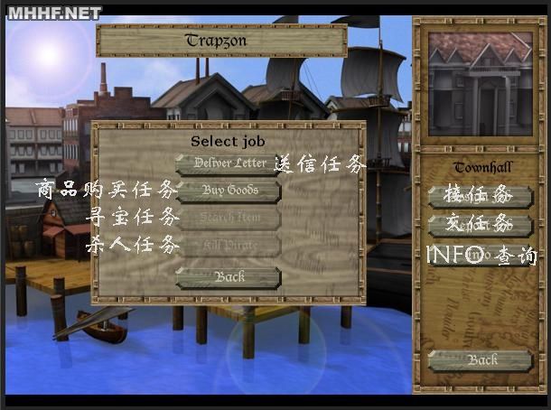 善用INFO功能,INFO除了可以查询购买商品任务中的资料外,还可以查询港口特产品.每个港口都有自己的特产品.同样可以通过市政大厅里的INFO功能查询