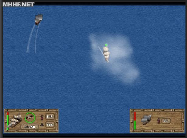 最后当然还可以选择肉搏战,顶着敌人的炮火,冲上去近身,就有选择,可以肉搏,肉搏就是拼水手的数量,而且肉搏可以抢夺对手的船,不过当你已经是大船时,抢了别人的小船,那就得不偿失了.