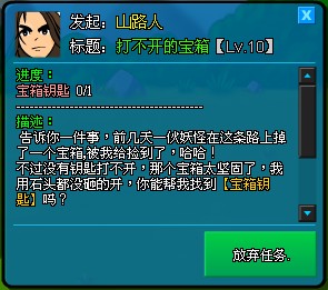 任务說明:1个宝箱钥匙〈必须去灵仙村的道具商人那边购买〉