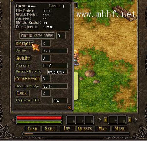 游戏中,每升一级都会有5个属性点,游戏过程中,怪掉下的东西里面,也会有提升属性的书.