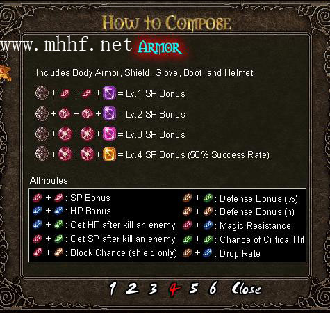 ARMOR即护甲类装备,包括衣服,盾牌,手套,鞋子,头盔 这个要看清楚了哦,否则合错了属性可别怪我!