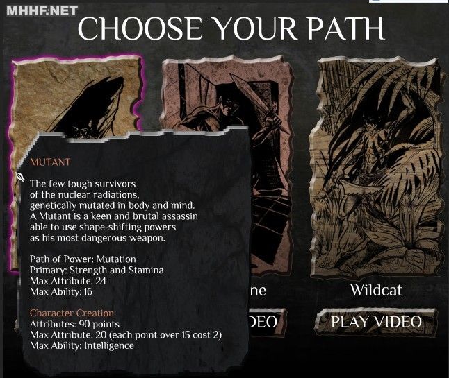 一开始点NEW GAME进入,你会看到有3个种族选择,分别是核变人(MUTANT),异种人(starkone),野猫(wildcat).