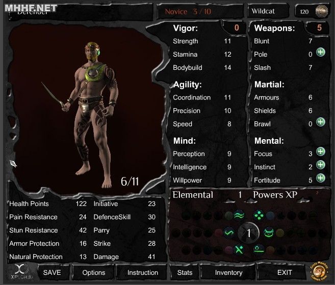 野猫特点,感知和协调突出,人物属性和能力最大都是20点,但身体强度属性最高只有15,属于高敏少血类型