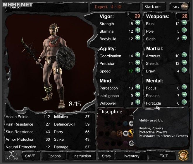 首先对你的角色来说,是选择棍棒盾牌,双手长矛,还是匕首长剑,甚至是护腕上面的刮刀,都是需要你自己设定好的,各自有各自的好处,也有短处,但属性点有限,主力加一种到极致,比你样样都会一些要强,因为武器熟练越高,伤害和命中也有提高滴