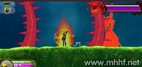 BOSS3绿母:注意地上的玫瑰,第一时间跑开,攻击BOSS到隐形后马上跳跃躲避BOSS的鞭笞,记得要垂直 跳跃,等待BOSS的技能,不要胡乱穿行,以免被地刺爆菊花(重头爆到尾的话4/5的血就没了),如果 BOSS接一个鞭笞就挂了。当然如果熟练的话可以用特殊技代替一切的躲避。。。。。