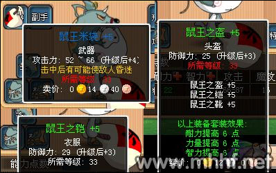 鼠王洞窟最后BOSS 金环, 掉落鼠王套装、+3至+5忍者套装、守护天使,小恶魔等多种物品。