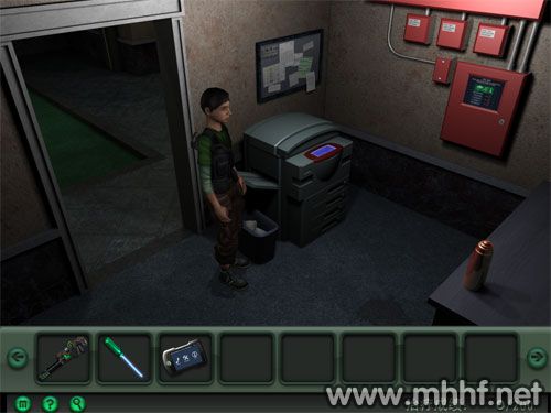 首先在大厅进入场景右边的复印室,捡起桌上的保温瓶,查看废纸蒌拣到一团废纸。在道具栏点击展开废纸,得到一张彩色图片。