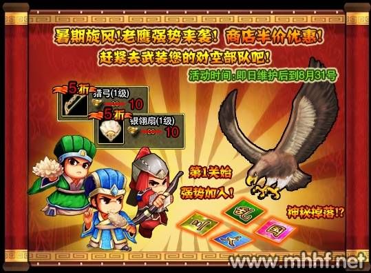 新增敌人鹰与赤鹰:仅弓兵、策士类的士兵或武将能作出有效攻击。活动期间击败它们将会得到不同的活动图腾!
