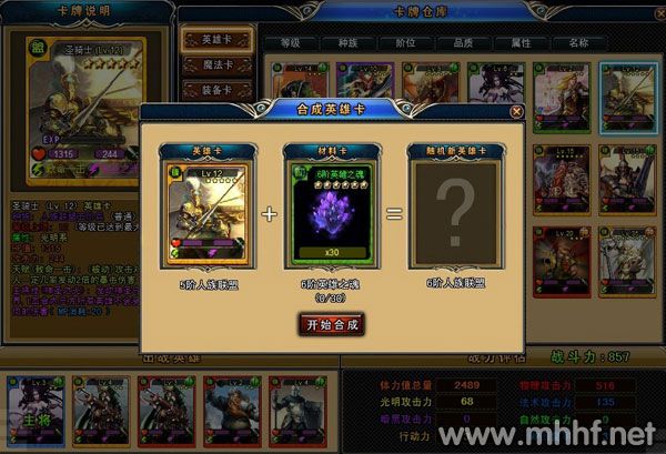 13.英雄卡,魔法卡,装备卡都可以由材料卡合成获得