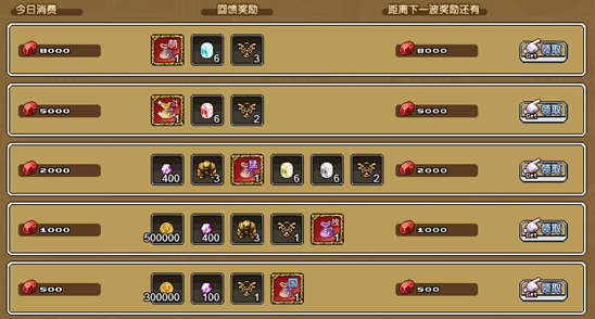 2、单日消费满5000血钻,即可获得:热斗英雄礼包×1,赤魂晶×6,冒险徽章×2
