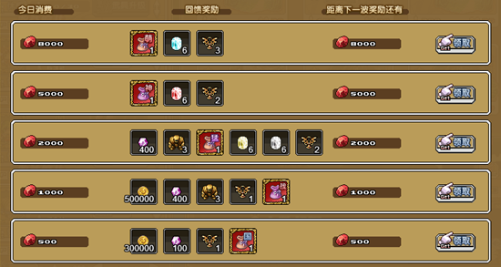2、单日消费满5000血钻,即可获得:神话礼包×1,赤魂晶×6,冒险徽章×2