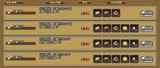 1、招募英雄次数达到25次可获得:草莓蛋糕×1,一乐拉面×1,牛肉盖浇饭×1,