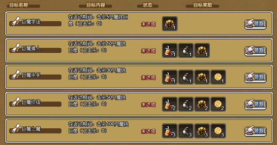 3、击杀巨魔30次,可获得:神力矿工包×1,雷管×1,巨魔雕像×1,挖矿徽章×1)