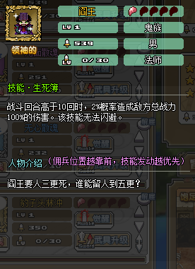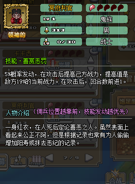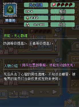 效果:每有一个不同形象的鬼族在场,王者等级提高2,防御等级提高2