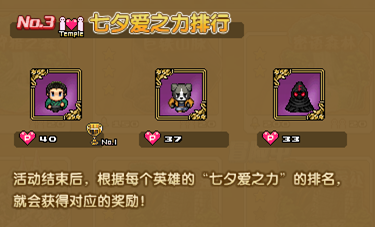 活动结束后,根据每个英雄的“七夕爱之力”的多少,您会获得对应的奖励!
