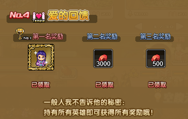 若您拥有“七夕爱之力”第二的英雄。您将获得3000血钻。