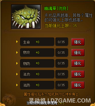 2.侍妖图鉴剥离至主界面,在图鉴功能里加入了强化侍妖属性功能,强化属性永久加成到对应侍妖身上。点击图鉴卡可以打开该对应侍妖的强化面板。