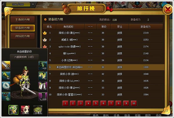 1. 加入【排行榜】系统,在排行榜里玩家可以分别通过查看【主角战力】【侍妖战力】【装备榜】来了解自己或其他玩家当前位于游戏的排名。