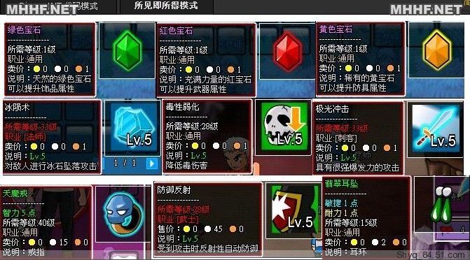 恶魔头颅(34级):出绿宝石~黄宝石~