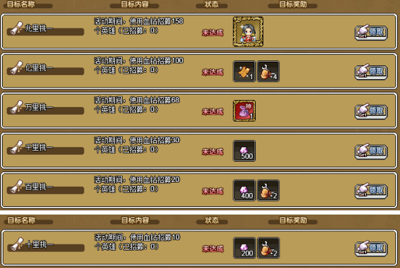 6、活动期间使用血钻招募10个英雄,即可获得:荣誉碎片×200,神力矿工包×2