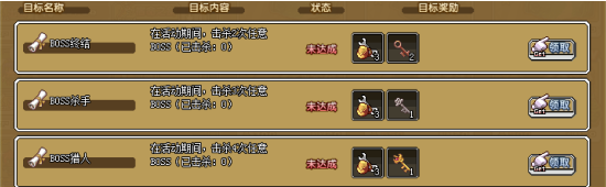 3、击杀任意BOSS4次,可获得:神力矿工包×3,烈焰金钥匙×1