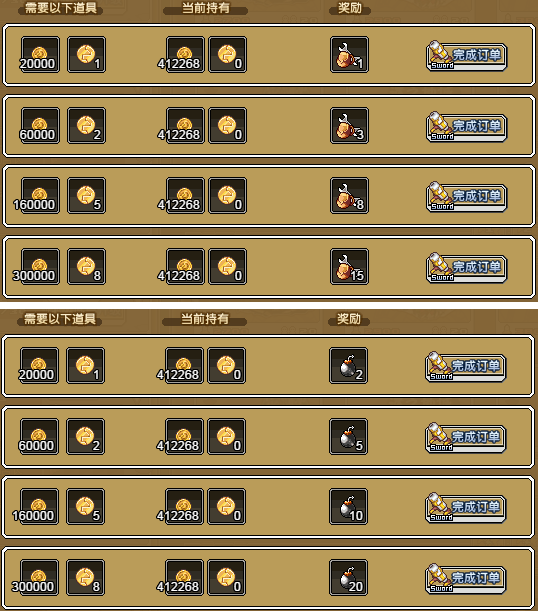 20、凑齐金币500000和8个冒险徽章,即可用来兑换:雷管×45