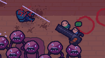 这是一款像素风格的格斗游戏,主角扮演一只恶魔英雄,通过发现和装备更强劲的武器,来击败其他邪恶的魔鬼。