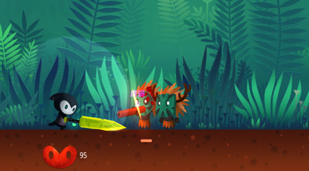 该游戏是典型的平台闯关类动作游戏,游戏中的光影效果及动作流畅性制作的非常到位,玩家扮演的主角为「黑剑客」,在角色的设计上偏Q版卡通。BGM音效等方面没有选用动作游戏常见的热血风格,而是选用了略带紧张和神秘的BGM,搭配效果非常不错。在打击感方面,动作配合音效可以让玩家体验到刀刀入肉的感觉。