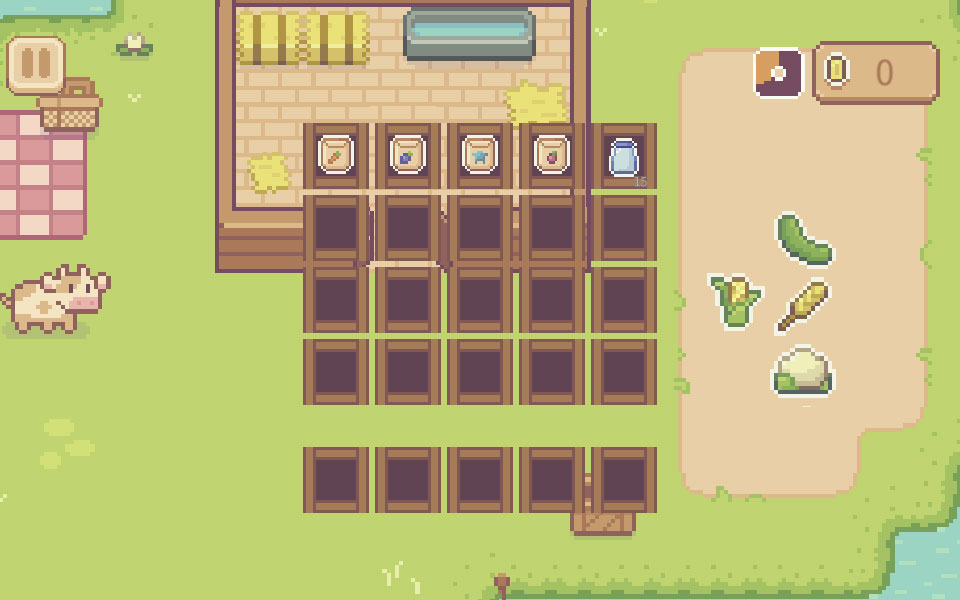 灵动汉化首发:提莫的果汁农场是一款简短有趣的像素风经营游戏,你的目标就是通过制作并出售各种颜色的果汁来赚取金币,通过给奶牛挤奶和种植不同的农作物来完成每天的订单。种植不同的农作物之后喂给奶牛使其变换成不同的颜色,然后就可以改变它们的牛奶色彩,看起来非常简单,但你必须提前都计划好并快速的实施才能赚到金币。