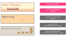 个关于矮人的冒险故事,矮人们列队出发再世界各地寻找龙之金币,获得足够多的金币后可以增加矮人团队的数量,提高金币获得效率,游戏场景也相当简单,主要分未3个区块,一个是矮人要塞、冒险之地(随着游戏的进展会逐步发生变化)、宝藏地点。玩家发出指令让矮人出发后,他们会经过冒险之地,最终来到宝藏地点获得金币后折回。你的目标就是尽可能多的获得金币激活更多可以提高效率的能力。